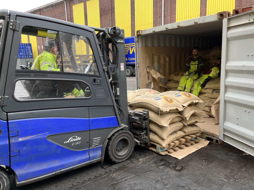 Im Juni war bereits die erste Charge des honduranischen Spezialitäten-Kaffees in Hamburg angekommen und wird seit Juli von Tatico-Kunden konsumiert. Nun konnten Thorsten Schulz und Damian Rodezno die ausstehenden 3 Container aus Honduras beim Importeur Vollers im Hamburger Hafen in Empfang nehmen. „Die Ankunft der Container, die Öffnung der Plomben und die erste Untersuchung, ob bei der Überfahrt Feuchtigkeit oder andere Verunreinigungen an den Kaffee gekommen sind mitzuerleben, war ein besonderer Moment“, so Damian Rodezno, Süd-Nord-Freiwilliger aus Honduras. Er empfing im Rahmen seines Freiwilligendienstes in der Röstwerkstatt kurz vor Beendigung seines Dienstes die Container der Ernte 21/22 seiner Kolpinggeschwister in Honduras.