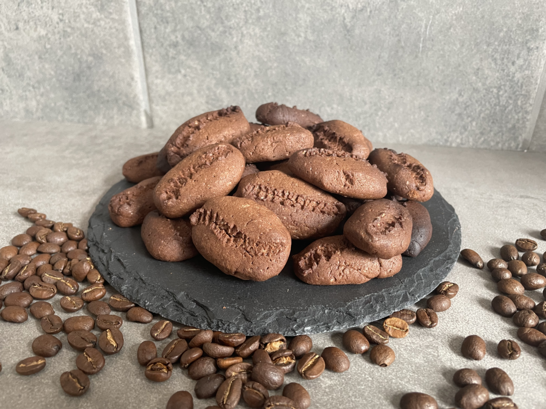 - Mit einem Messer oder Zahnstocher eine Linie in die „Kaffeebohne“ zeichnen