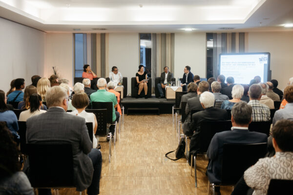 In zwei spannenden Diskussionsrunden, zweisprachig moderiert von Katharina Nickoleit (WDR), konnten die rund 80 geladenen Gäste, die zum Abendforum ins Hotel Aspethera gekommen waren, mehr zum Thema Kaffeehandel und Solidaritätsarbeit aus verschiedenen Perspektiven erfahren.
