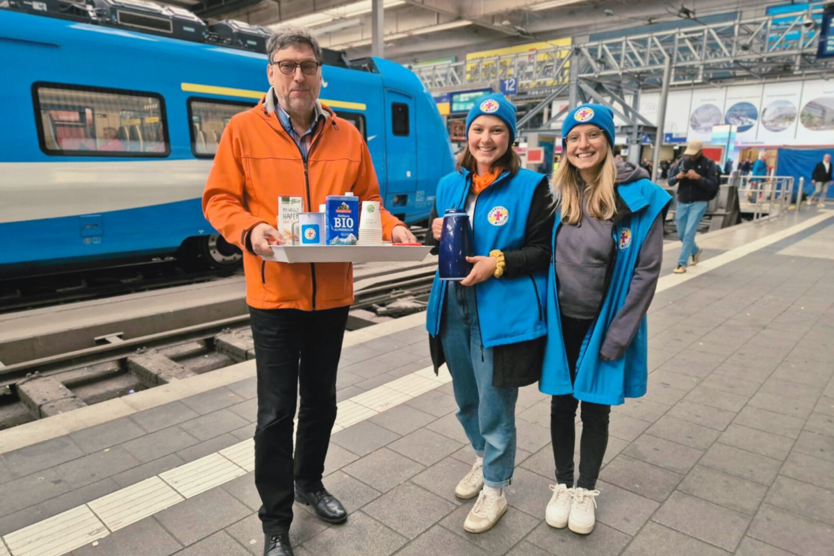 Die Kolpingjugend im Diözesanverband München und Freising hat am Freitag, den 13. September einen Tag lang Tatico Kaffee am Münchner Hauptbahnhof ausgegeben. Kooperiert wurde dabei mit der Bahnhofsmission vor Ort. Tatkräftig wurde Kaffee an Reisende und Bedürftige ausgeschenkt, die am gemeinsamen Stand der Kolpingjugend und der Bahnhofsmission vorbeikamen. Der Ausschank erfolgte dabei auf Spendenbasis. Durch den Tatico Kaffee wurde auf die Faire Woche und die Anliegen des Fairen Handels aufmerksam gemacht, die Spenden kommen der Arbeit der Bahnhofsmission zu Gute.