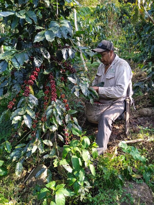 Kaffeeernte ist sorgfältige und gewissenhafte Handarbeit. Jede Kirsche wird, wenn sie den optimalen Reifegrad erreicht hat, einzeln vom Strauch gepflückt. Grüne Kirschen, die noch nicht erntereif sind, werden zu einem späteren Zeitpunkt geerntet.